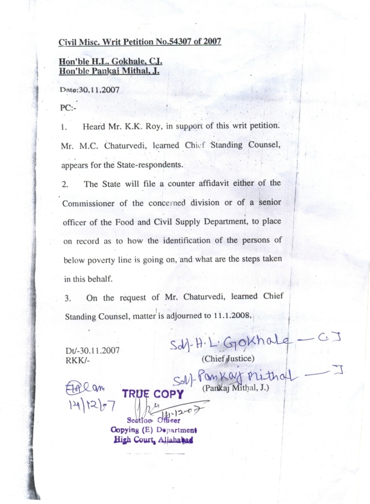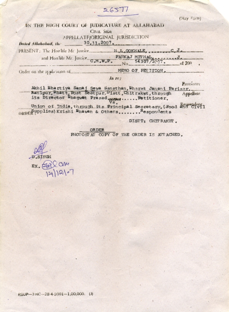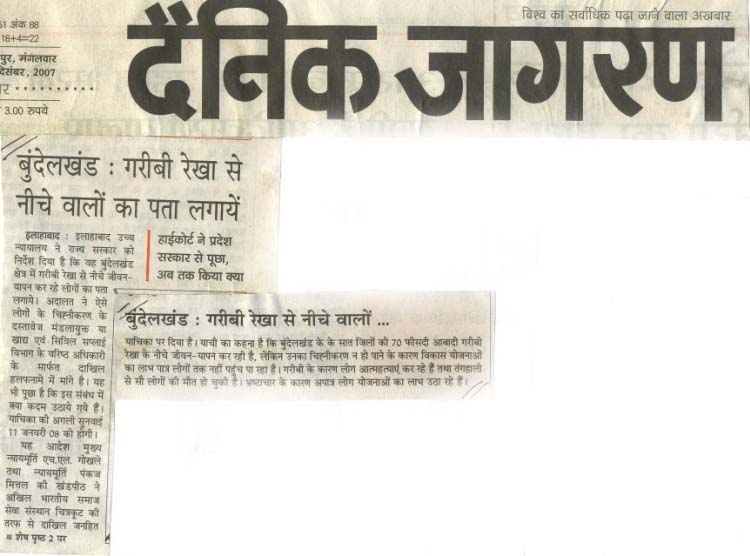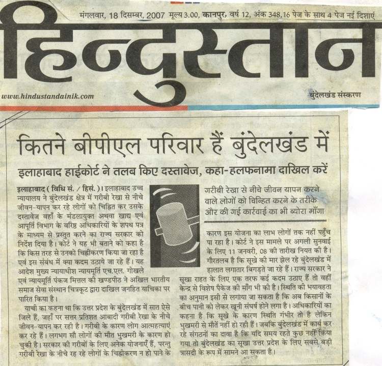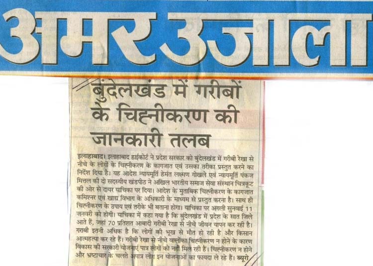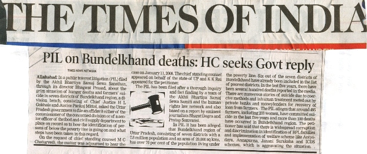 ABSSS has filed a PIL in Allahabad High Court requestintg it to mandamus to Commissioners of Chitrakut Dham and Jhansi divisions to look into starvation deaths and farmers' suicides and take corrective steps.