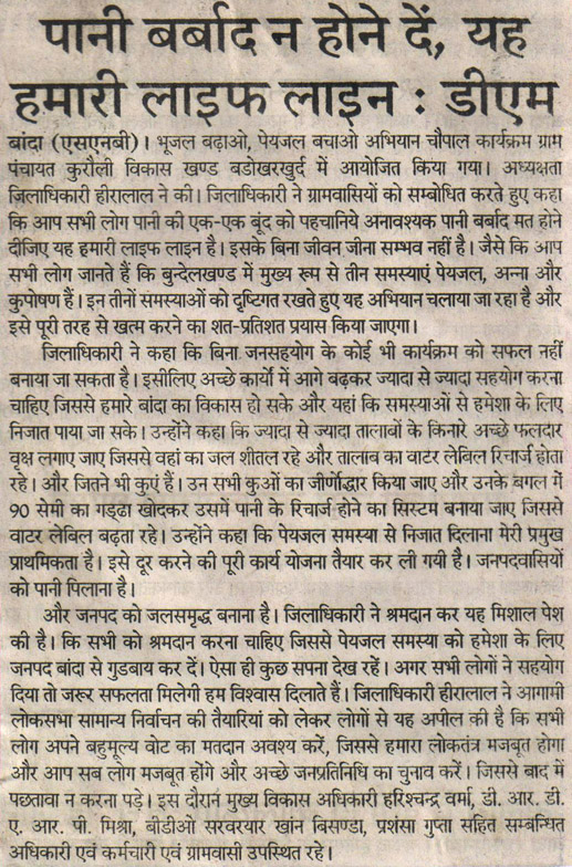 पानी बर्बाद न होने दें, यह हमारी लाइफलाइन: डीएमराष्ट्रीय सहारा, 8 मार्च 2019