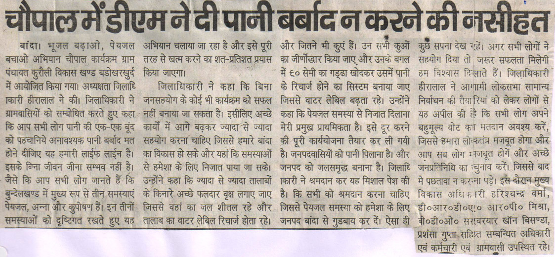 चौपाल में डीएम ने दी पानी बर्बाद न करने की नसीहतबुंदेलखंड लाइव, 8 मार्च 2019
