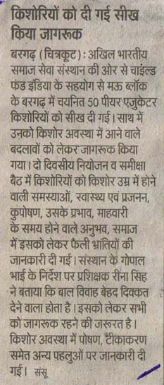 किशोरियों को दी गई सीख किया जागरूक